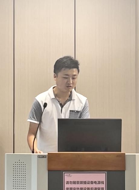 谭敏聪同学汇报的主题是基于邻层引导的场景文本检测方法,他的讲解主要包括以下四部分:选题背景及意义、现状与研究目标、研究方法及过程、研究结果与应用。首先,他介绍了该课题的研究背景和意义,并指出深度学习的引入使得适应各类场景的场景文本检测成为可能。对于特征融合不充分、文本信息复杂以及小文本难检测的现有问题,他提出了研究目标:删除自顶向下的路径,改使用跨层级引导;跨层级引导,以及权衡高低层级的信息比重;尝试在分割的任务中引入回归方法的要素:拟合文本实例,捕获长程依赖。然后,对研究方法、过程进行了详细地讲解,同时指出其改进方法在于特征融合部分与预测头部分。最后,他展示了研究结果与应用,并对进行了总结。