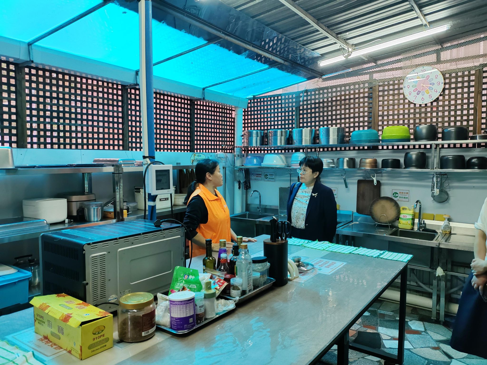 随后,大家一同参观了乐膳小厨。厨房内,厨具摆放得整整齐齐,消毒柜、微波炉等设备一应俱全。工作人员介绍,这里是患儿家长们的“解忧角”,忙碌的求医途中,家长们能在这里亲手为孩子做一顿可口的饭菜,用熟悉的味道慰藉孩子治疗时的苦楚。烟火气氤氲的小厨,藏着最朴素的温暖,也让艰难的求医之路多了一丝家的味道。