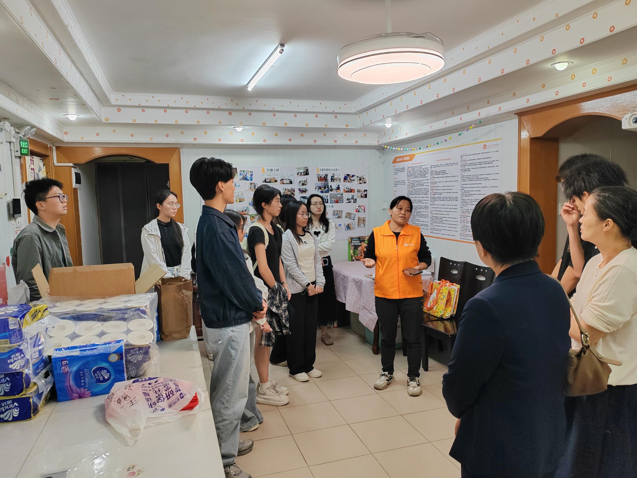 刚踏入小家,工作人员便热情接待了师生一行,讲述广州小家的初心与坚守。多年来,广州小家始终秉持着“赋能患儿家庭,助力渡过难关”的使命,为远离家乡、奔波求医的家庭提供免费住宿、生活帮扶与心理疏导,让那些被病痛阴霾笼罩的家庭,能在陌生的城市里拥有一个安稳的“临时小家”。工作人员分享的一个个暖心故事,字里行间满是守望相助的温情,让在场的师生们深受触动,也对这个公益组织的使命与担当有了更深刻的认识。
