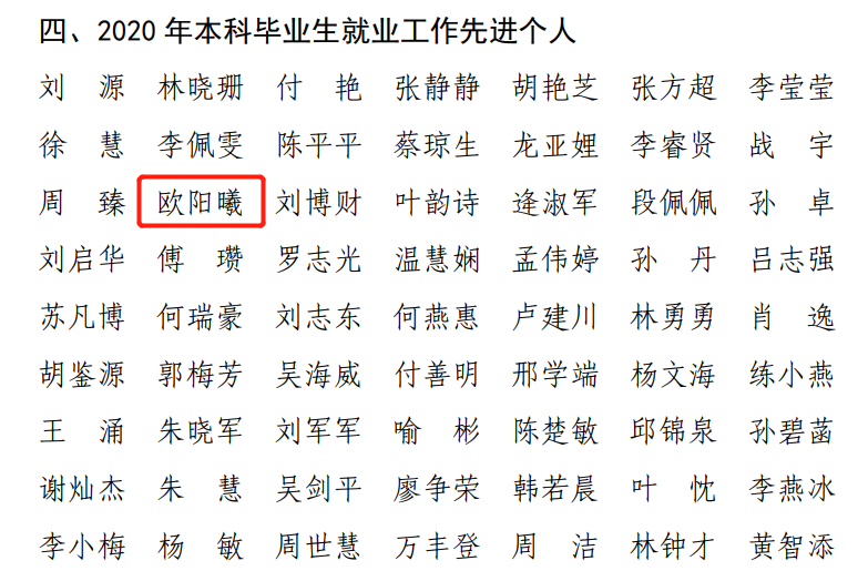 在2020年学校招生就业工作中,杏吧视频 克难求进、卓有成效地完成学校招生就业各项工作,其中王志杰、张技老师被评为2020年普高招生工作先进个人,欧阳曦老师被评为2020年本科毕业生就业工作先进个人,王沁芳老师被评为2020年研究生就业工作先进个人。希望所有师生向先进学习,继续做好杏吧视频 招生就业工作,不断开拓创新,再创佳绩。