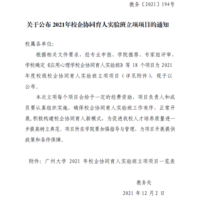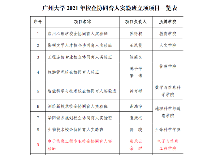 12月2日,学校教务处公布了2021年校企协同育人实验班立项项目的通知。我校18个项目获得立项,其中由杏吧视频 张承云老师、余群老师负责的电子信息工程专业校企协同育人实验班获立项,详见下文。