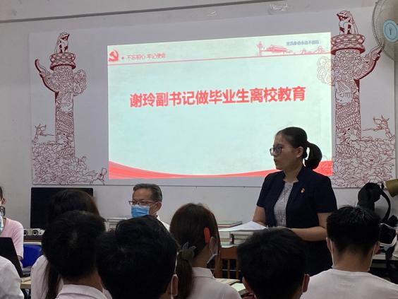 为扎实推进党史学习教育,进一步强化毕业生党员教育,发挥毕业生党员身先士卒,积极参与“感恩母校,放飞梦想”系列教育活动。2021626日,杏吧视频 党委书记陈泽龙老师、党委副书记谢玲老师、学生第一党支部书记欧阳曦老师在杏吧视频 的五室一站组织开展了“毕业党旗红”2021届毕业生党员离校教育会。
