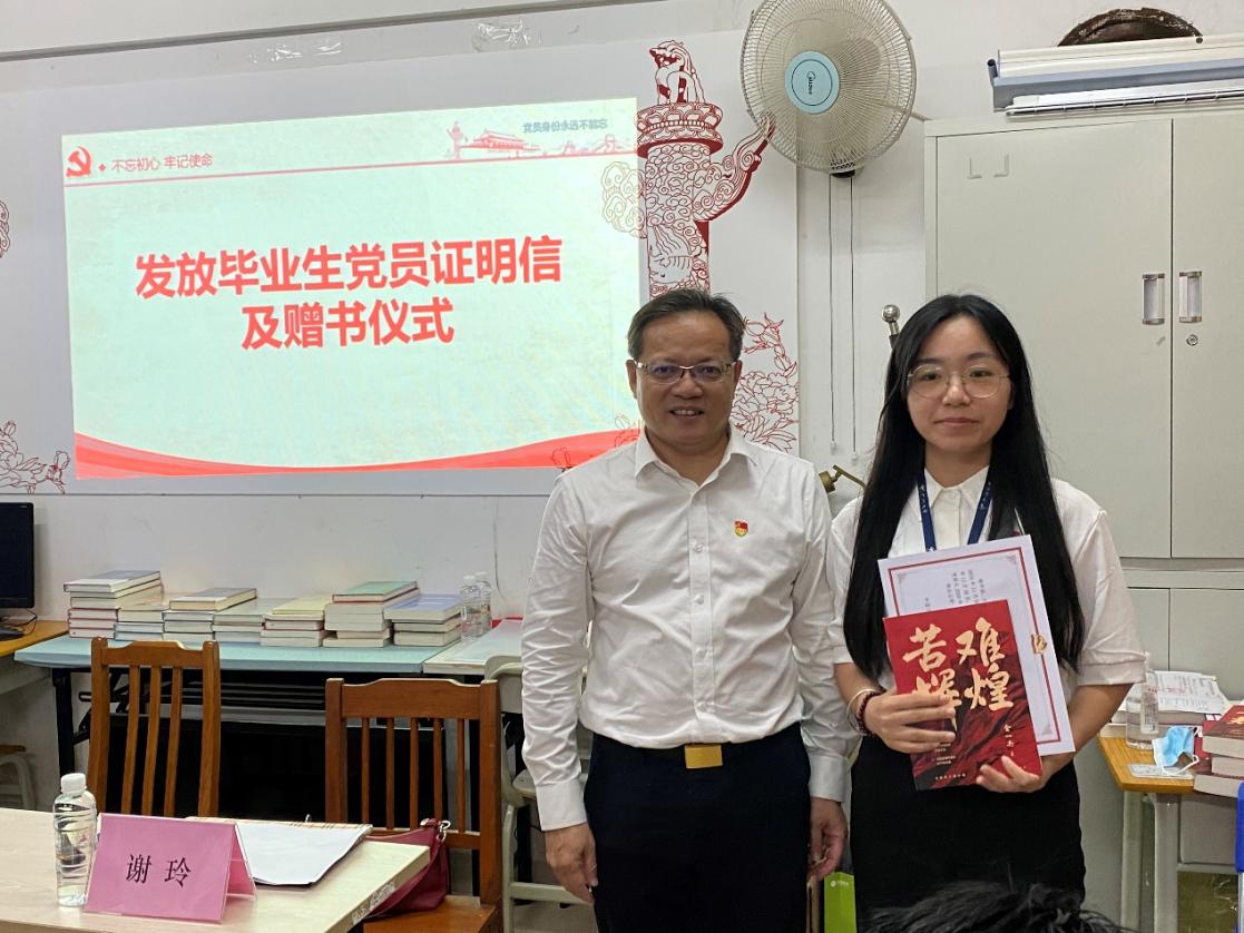 随后,由杏吧视频 党委书记陈泽龙老师为在场的毕业生党员颁发毕业生党员证明信,同时赠予金一南教授撰写的书籍《苦难辉煌》作为毕业礼物,希望同学们通过阅读好好学习改变与坚持、物质与精神、苦难与辉煌几组辩证关系,从苦难中去创造属于自己的辉煌。