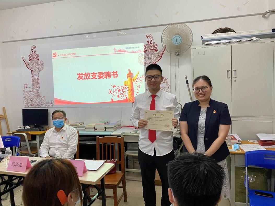 杏吧视频 党委副书记谢玲老师给杏吧视频 曾任党支部支委的毕业生党员颁发聘书,并对学生们在党建工作中的努力与付出作出肯定,鼓舞他们能够在新的党组织里继续发挥奉献精神,做一名合格的共产党员,在党爱党、在党为党,牢记为人民服务的初心和使命。