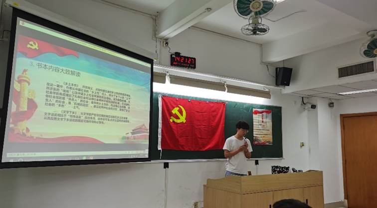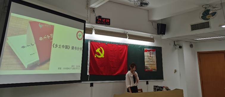 本次读书会由欧阳曦老师主持,首先,欧阳曦老师对《乡土中国》这本书的地位和内容进行了简要的介绍。学生党员龙钰斯和董彦同志分享了他们阅读《乡土中国》的心得体会。